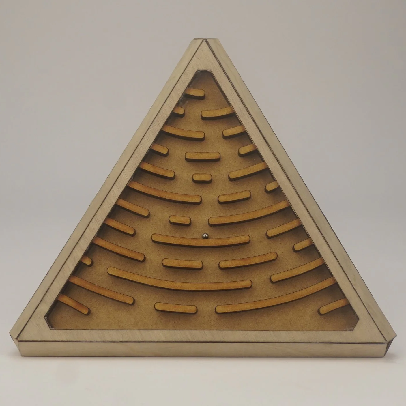No matter which side you start on or which path you take, you will always meet the end, representing death. The ball bearing spirals around this vortex faster and smaller until it goes down the shoot, ending up at the opposite vertex of the pyramid, where you can pick any of the playable 3 sides to start again. This gameplay loop symbolized the cycle of birth, death, and birth again.